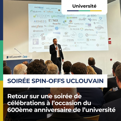 600 ans d’excellence et d’innovation, rien que ça. C’est ce qu’a voulu célébrer LouvainTRANSFER, unissant l’Administration de la Recherche de l’UCLouvain et la Sopartec, en une soirée rythmée par des interventions et des succès en images des spin-offs emblématiques de l’université.